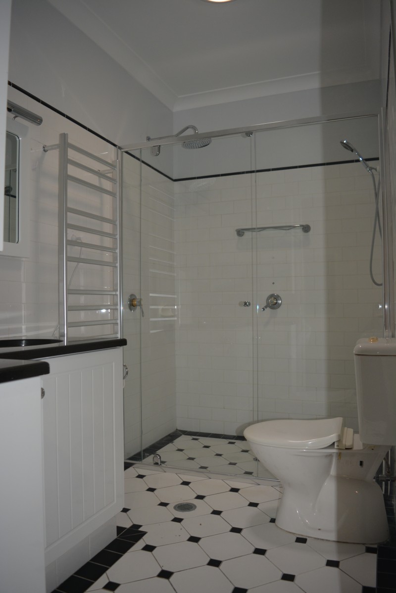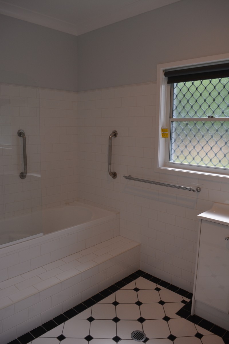 * Bathroom - shower over bath + vanity